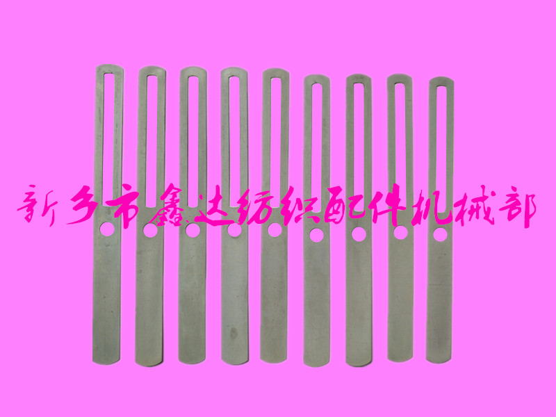 1511/1515停经片(经停配件)用于织布机,外形参数:长度120mm,宽度11mm,闭口,厚度0.1mm、0.2mm、0.3mm、0.4mm,纺织器材(五金配件)表面镀锌处理,有梭织布机使用数量按照织造品种总经根数相等。
